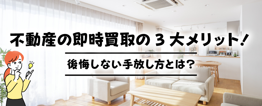そこで今回の記事では、不動産の即時買取とは何か、3大メリットとデメリット、後悔しない手放し方に至るまで、分かりやすく解説していきました。